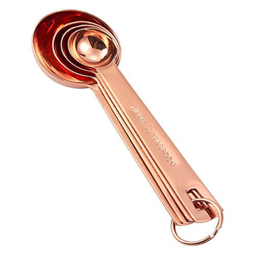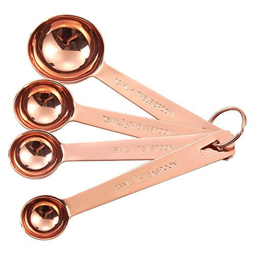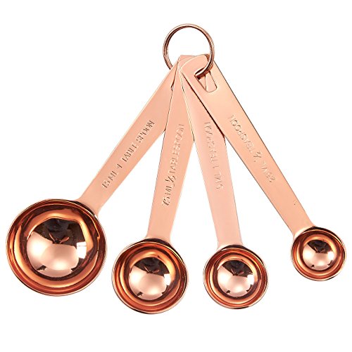ULTRA-DURABLE: This set of 4 Measuring Spoons are made of 201 Stainless Steel with copper coating and are rust resistant, corrosion resistant and shatter-proof