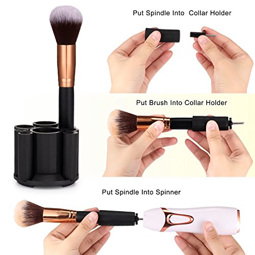 SIMPLE & EFFICIENT: Takes only 3 steps to use the Makeup Brushes Cleaner Kit: 1.Attach the make up brush to the spinner. 2. Add water and soap into the bowl. 3. Soak and spin to clean, lift and spin to dry.