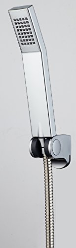 -. Feature : Handbrause, eckig, verchromt. / Einfache Montage. / Inklusive Brauseschlauch aus Metall, ausziehbar von 170 cm bis 220 cm. / Duschhalterung aus ABS, verchromt