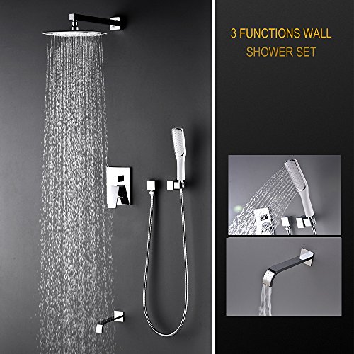 Artbath Luxury Rain Mixer Shower Combo Set Wall Mounted, 3 Way Shower System with Rainfall Shower Head, Handheld Shower and Tub Spout Faucet, Polished Chrome