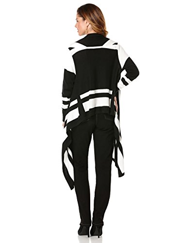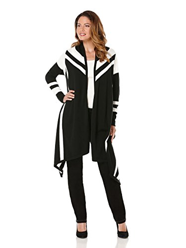 Rafaella Women's Misses Long Sleeve 100% Cotton Graphic Stripe Open Front Cardigan Black SML