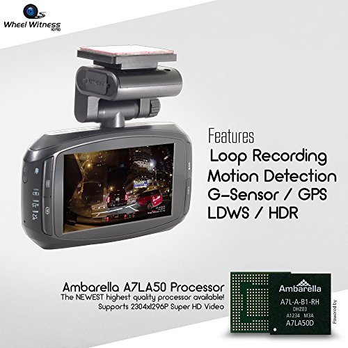 WheelWitness HD PRO Dash Cam with GPS - 2K Super HD - 170° Lens - 16GB microSD - Advanced Driver Assistance - For 12V Cars & Trucks - Night Vision Dashboard Camera Ambarella A7LA50 Car Security DVR