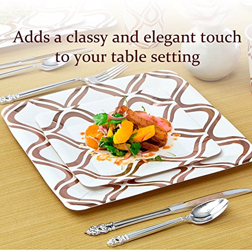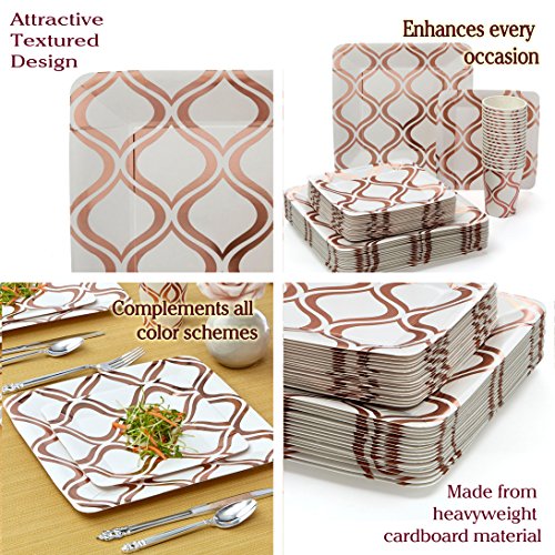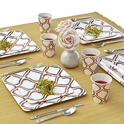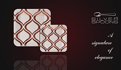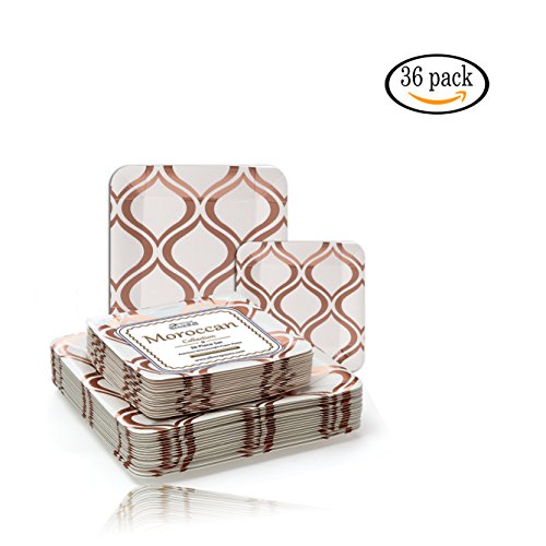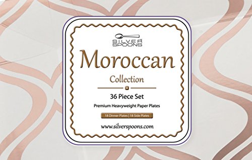 Studio : Silver Spoons Publisher : Silver Spoons Binding : Kitchen Product Description Change the look of your table and awe your guests with these Moroccan collection 36 pieces metallic Rose dinnerware plates. Create an elegant table-setting with this Moroccan dinnerware set. What's in the box: 18 x metallic Rose dinner plates 18 x metallic Rose side plates Product features: 100% and non-toxic. Made from high-grade heavyweight paper material. Sturdy and durable designed with wide rims to avoid spills. Crafted to carry heavy food items and to handle hot and cold dishes. High-end look at an affordable price benefits: made from the finest paper on the market. All our products undergo strict quality control to meet the high standards of our customers. Our non-toxic disposable paper plates are safe to use anytime and anywhere. Classy elegant, yet affordable. These plates will enhance the appearance of your food displays and will create the perfect setting for your event. This is a hassle-free alternative to using real china dishes and worrying about rental fees or broken pieces. Our disposable tableware collection will enhance your party and turn it into a magnificent and memorable experience. Set your table to perfection with this Moroccan collection metallic Rose dinner and side plates. With its fine look and elegant contrasting design these plates are sure to bring your event to the next level. 0