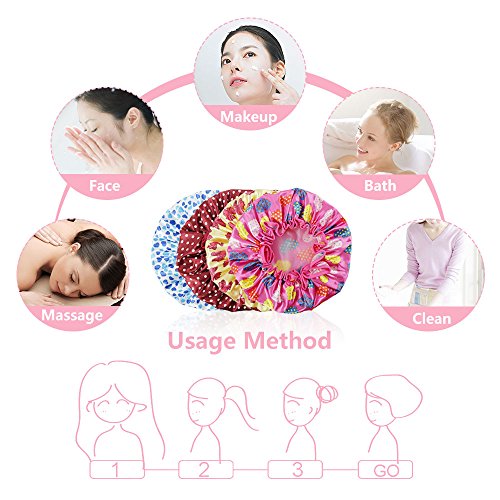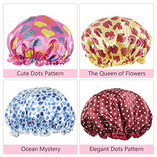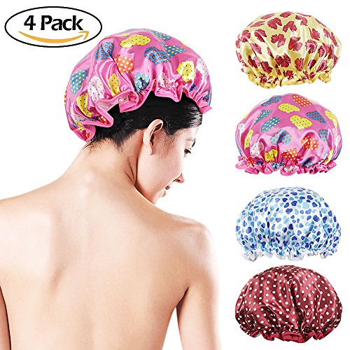 4 PCS Shower Cap, Kisstaker Double Design Waterproof Large Shower Cap with Elastic Band for Women