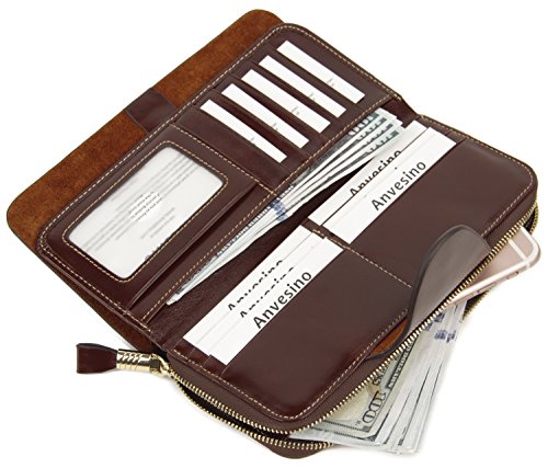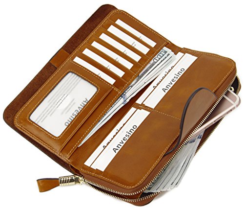 -. Title : Anvesino Women's RFID Blocking Wallet Trifold Luxury Leather Clutch with Zip Pocket