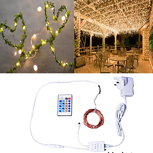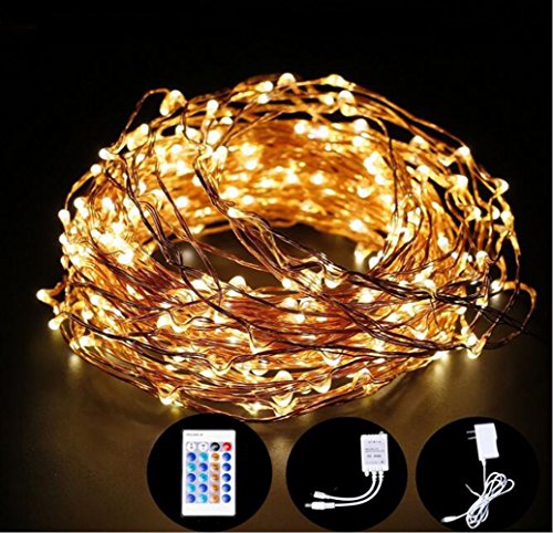 33ft 100LED Rope Fairy Light copper lights dimmable with Remote Control,Waterproof beautiful Lights for Bedroom, Patio, Garden, Gate, Yard, Parties, Wedding(Warm White)