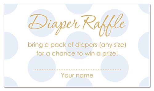 - Who doesn't like a raffle? These cute raffle cards feature blue polka dots. Diaper raffles are a great way to add more excitement to your baby shower.
