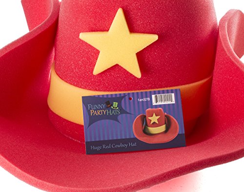Product Description This is a great hat for any party or celebration. A fun super sized clown cowboy hat for any occasion. This adult hat is perfect for a costume on its' own or role play as a larger than life Texan. For best results, remove from packaging promptly and mist light with water, then allow a few days for hat to expand before use. 0