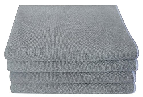 Gryeer Microfiber Kitchen Towels - Highly Absorbent, Thick and Lint Free Dish Towels - Great for Cooking in Kitchen, Household Cleaning, Bathroom and Garage - 20 x 28 Inch, 4 Pack, Gray