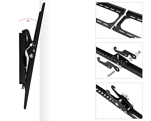 -. Feature : For LOWEST P.R.ICE HDMI Cable: 6' - ASIN: B00CVFD3HO, 10' HDMI Cable, check ASIN: B00B0FRLKQ, 15' check ASIN B00CVFGV1Y, 20' check ASIN B00CVFJ6BQ, 25' check ASIN B00CVFJGCA / Universal design fits mostly All 32 - 60" TVs - Compatible with VESA patterns 23.5" Horizontal x 17" Vertical up to 600x400 mm / Support up to 120 lbs or 55 kg. Material for Arms, Wall Plate & TV Plate: 100% high grade steel. / Heavy duty: Wall panels are cut from two solid metal sheets. 53% heavier than the same type in this class. / Tilt range: 15 degree downward. Support 12" and 16" stud space installation. Mounting hardware included.