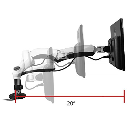 -. Feature : Mounting Components: Grommet mount, C-clamp, 2 adapter plates, 2 full motion arms / Dimensions (WxDxH): 25.6 in x 4.6 in x 23.3 in / Weight: 14 lbs.