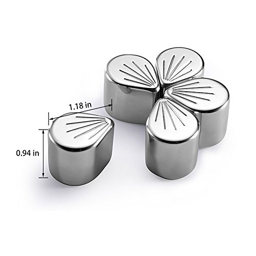 Whiskey Stones Set of 6 Stainless Steel Ice Cubes, Resuable Frozen Chiling Rocks with Ice Tongs, Food Grade Stainless Steel, Anti-Rust, No Diluting, For Chilling Beer, Wine, Beverage and Juice