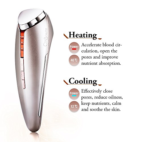 CosBeauty Anion Skin Refreshing Device, Heating and Cooling Vibration Ion Facial Massager, Skin Care Beauty Device (gold)