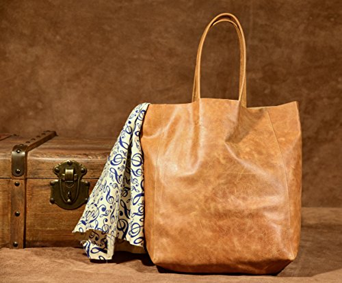 Women's Classic Handcrafted 17" Genuine Leather Travel Tote Bag, Free Gift Included, Multi Func...