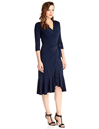 This midi dress comes with a cross over true wrap style with bodycon bodice, flared mermaid skirt and a self-tie belt.