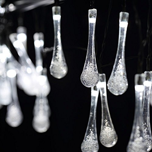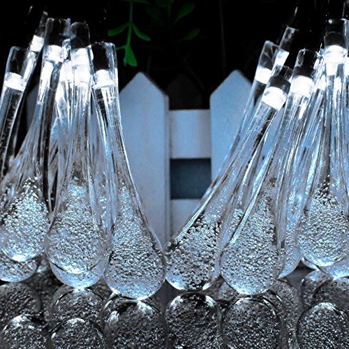 Outside String Lights Weatherproof, 20 ft 30 Crystal Water Drop 8 Modes LED Solar Christmas Lights Outdoor Waterproof for Home Garden Lawn Wedding Holiday Decoration (White)
