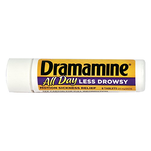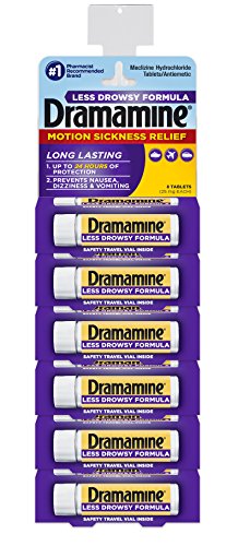 ReleaseDate : 2017-08-12 Studio : Medtech Product Inc. Publisher : Medtech Product Inc. Binding : Health and Beauty Product Description Dramamine Less Drowsy 6 Package Display-4 Pre Loaded Clip Strips Containing 6 packages Each (Less Drowsy 8 count) Dramamine All Day Less Drowsy prevents and treats nausea, vomiting and queasiness with less drowsiness. A Pharmacist-Recommended Brand, Dramamine All Day Less Drowsy relieves motion sickness symptoms with less drowsiness for up to 24 hours: - Long-lasting formula - Treats and prevents nausea, dizziness, vomiting queasiness - A Pharmacist Recommended Brand 0
