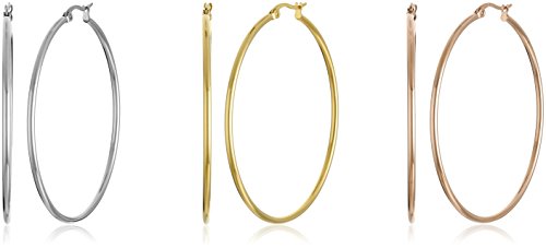 Set of 3 50mm Silver Toned,18k Gold Plated, 18k Rose Gold Plated Hoop Earrings