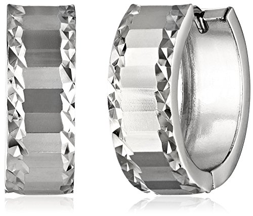 14k White Gold Diamond-Cut Huggie Hoop Earrings