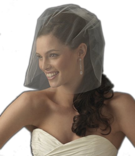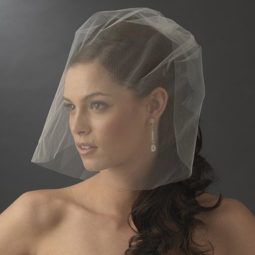 Feature : Simple and Elegant Ivory Blusher Veil / Single Layer Birdcage Wedding Veil / Hand Wired to a Flexible Silver-tone Comb / Size: 11" long x 11" wide / Color: Ivory