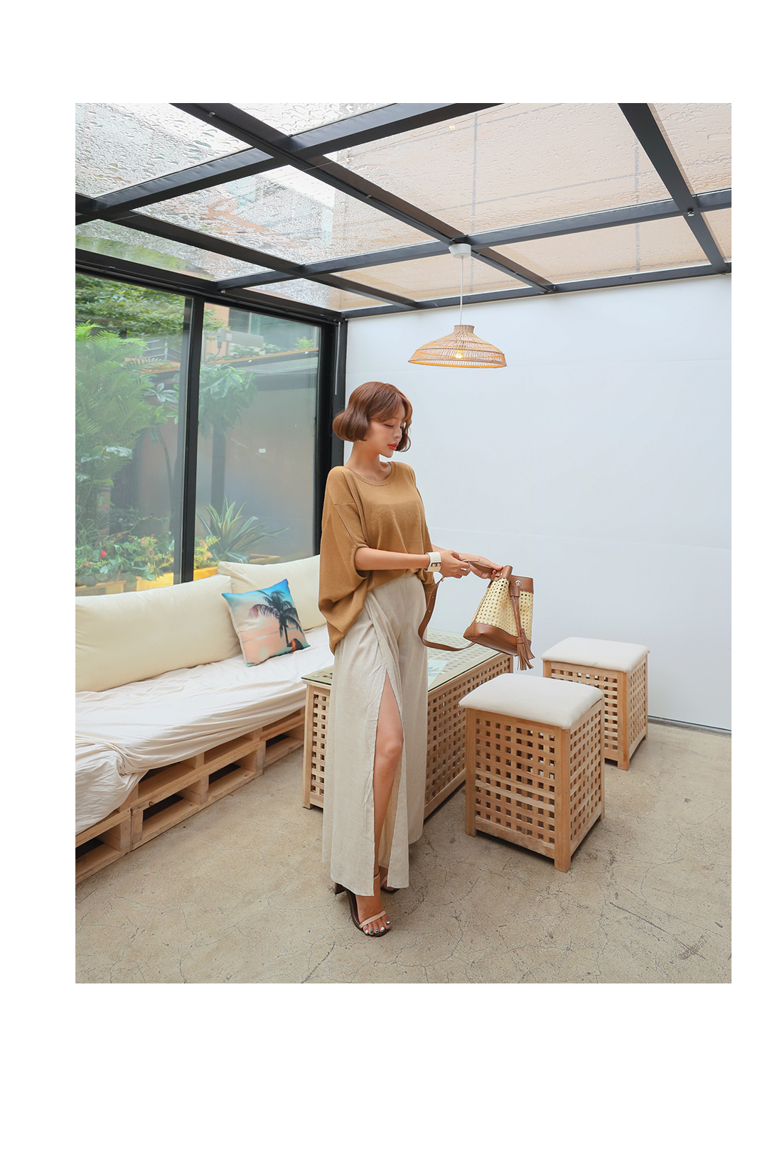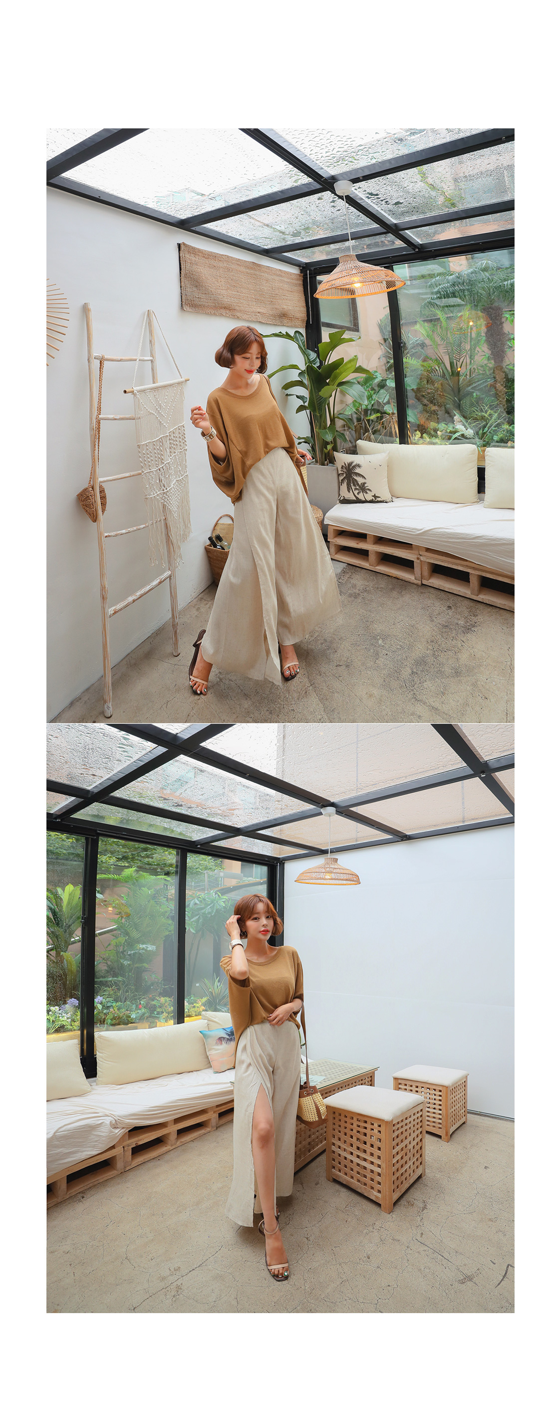 프론트 밑단에 살짝 트임을 주어 은은한 포인트를 주었으며