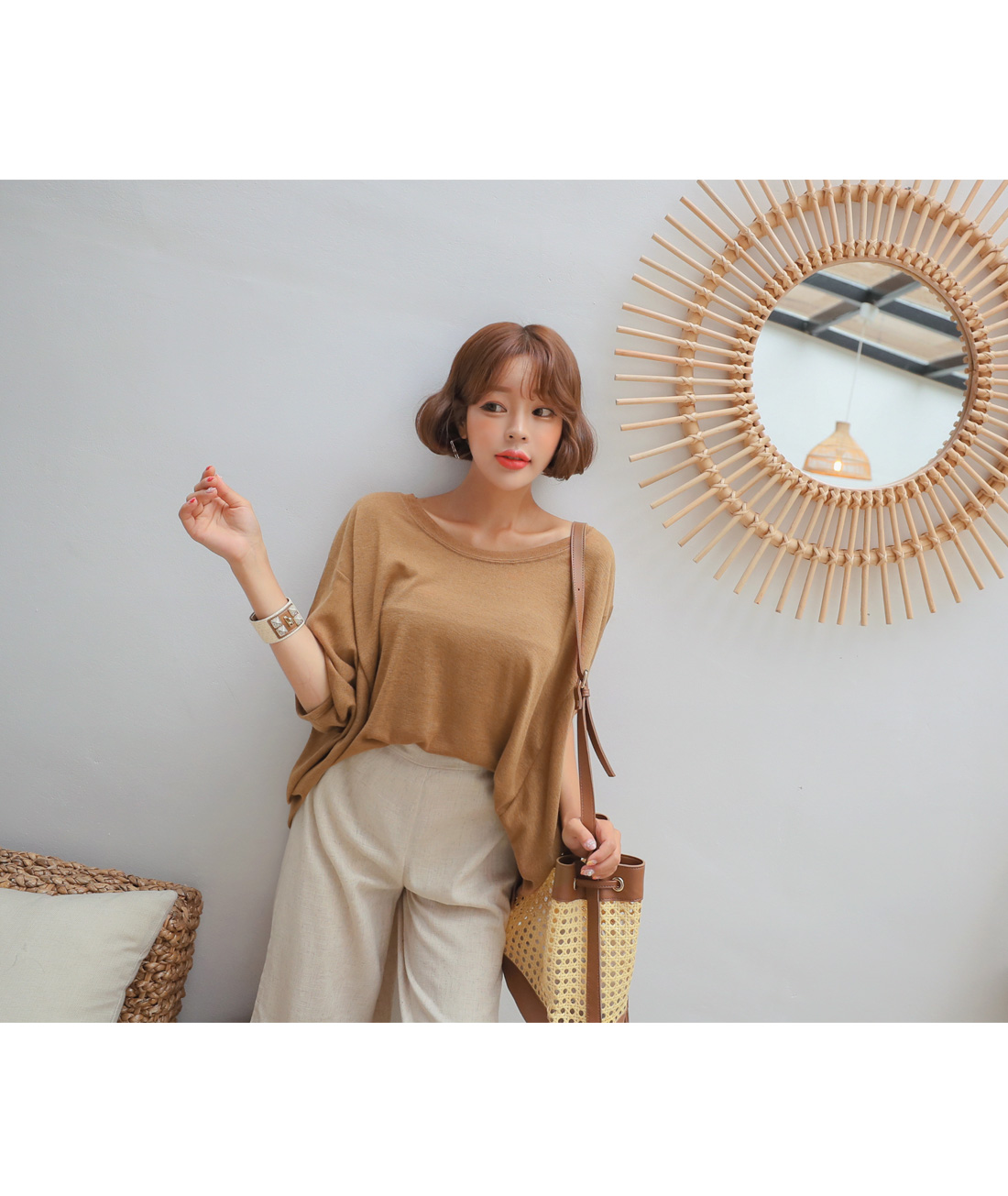 낮게 드롭된 숄더라인에 가오리핏으로