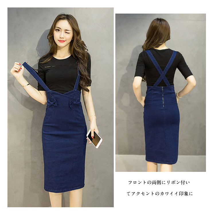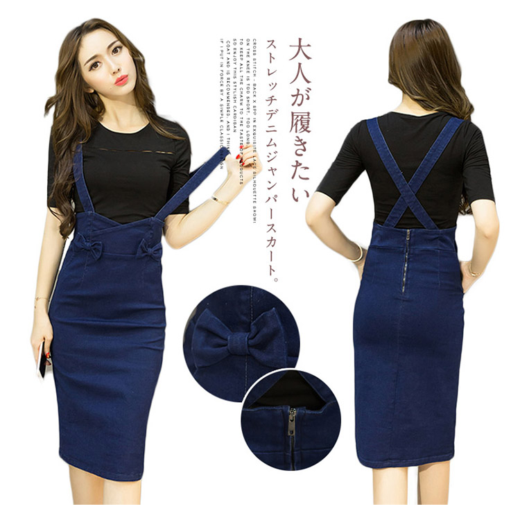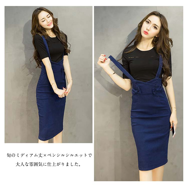 | 大人が履きたいストレッチデニムジャンパースカート。子供っぽく見えないようシンプルデザインとハイウエストデザインですっきりとしたシルエットに!フロントの両側にリボン付いてアクセントのカワイイ印象にスリムなシルエットなのにストレッチが効いているのでとっても楽チン。旬のミディアム丈×ペンシルシルエットで大人な雰囲気に仕上がりました。お手持ちのトップスとも相性よく、ディリーに大活躍してくれること間違いなし。 | |