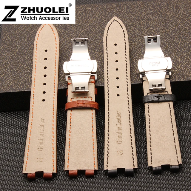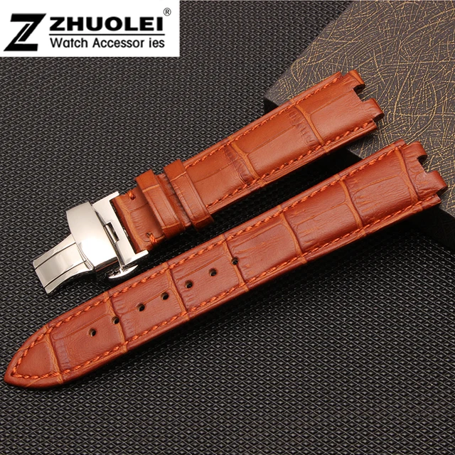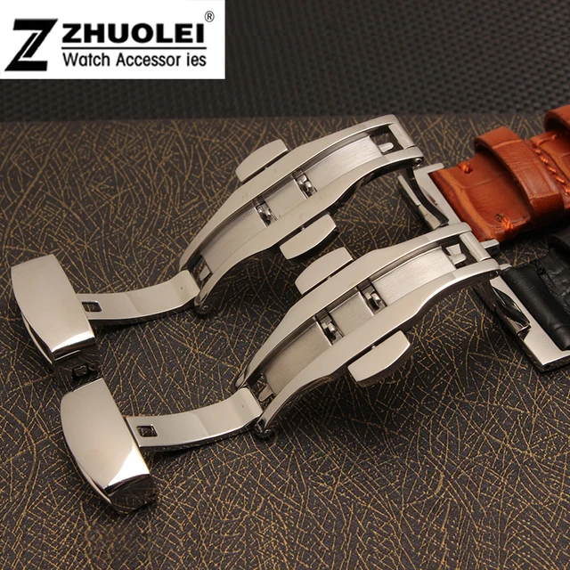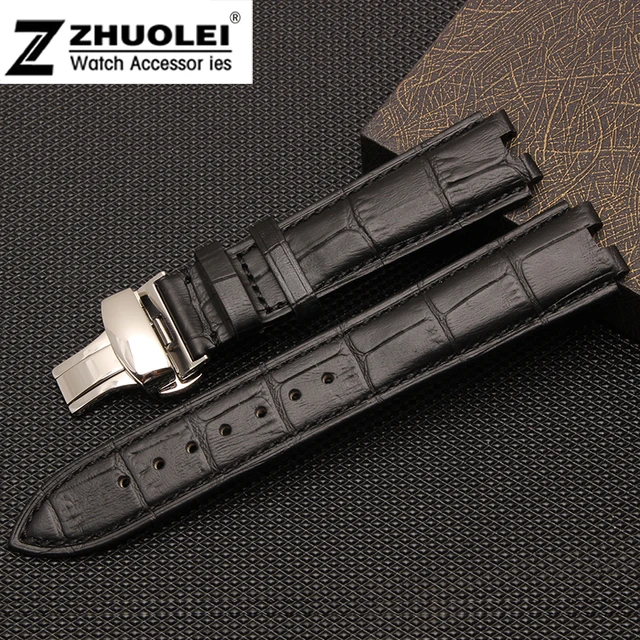 | [해외] 22 미리메터 블랙 | 브라운 100% 가죽 나비 시계 스트랩 팔찌 교체 페블 Steel2 줄 |