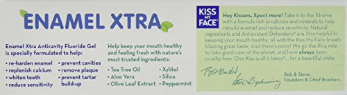 -. Binding : Health and Beauty -. Brand : Kiss My Face -. Feature : Enamel Ant cavity Fluoride Gel specifically formulated to help re-harden enamel and to replenish calcium / Whitens teeth while also reducing gum sensitivity and preventing cavities / Removes plaque and prevents tartar build-up / Made with nature's most trusted ingredients including tea tree oil and aloe / The Kiss My Face recipe includes no artificial flavors or sweeteners -. IsAdultProduct : 0 -. Label : Kiss My Face Corp -. Manufacturer : Kiss My Face Corp -. MPN : COMINE5014928 -. NumberOfItems : 24 -. PackageQuantity : 1 -. PartNumber : COMINE5014928 -. ProductGroup : Beauty -. ProductTypeName : BEAUTY -. PublicationDate : 2016-03-22 -. Publisher : Kiss My Face Corp -. ReleaseDate : 2016-03-19 -. Studio : Kiss My Face Corp -. Title : Kiss My Face Enamel Xtra Gel Toothpaste, 4.5 Ounce (Pack of 24)