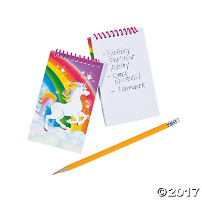 Studio : Oriental Trading Company Publisher : Oriental Trading Company Binding : Office Product Product Description These magical notepads are popular among students for their bright colors and unicorn design. Made of paper. Includes 1 dozen notepads. They measure 3 Inch x 5 Inch. 0