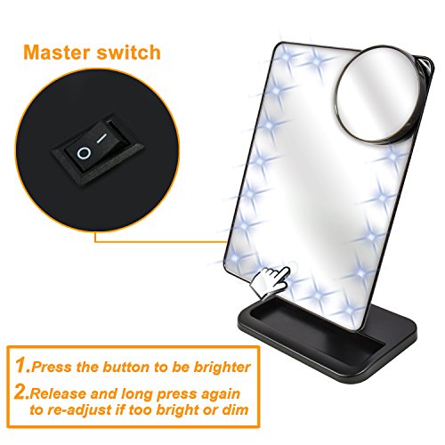 [20 pcs LED lights] Built-in 20pcs adjustable LED lighted allow you to make-up in the dark or poorly lit areas.