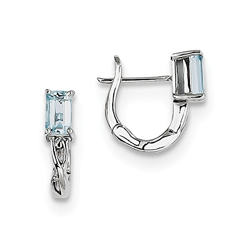 Sterling Silver Simulated Aquamarine Hinged Hoop Earrings (11mm x 12mm)