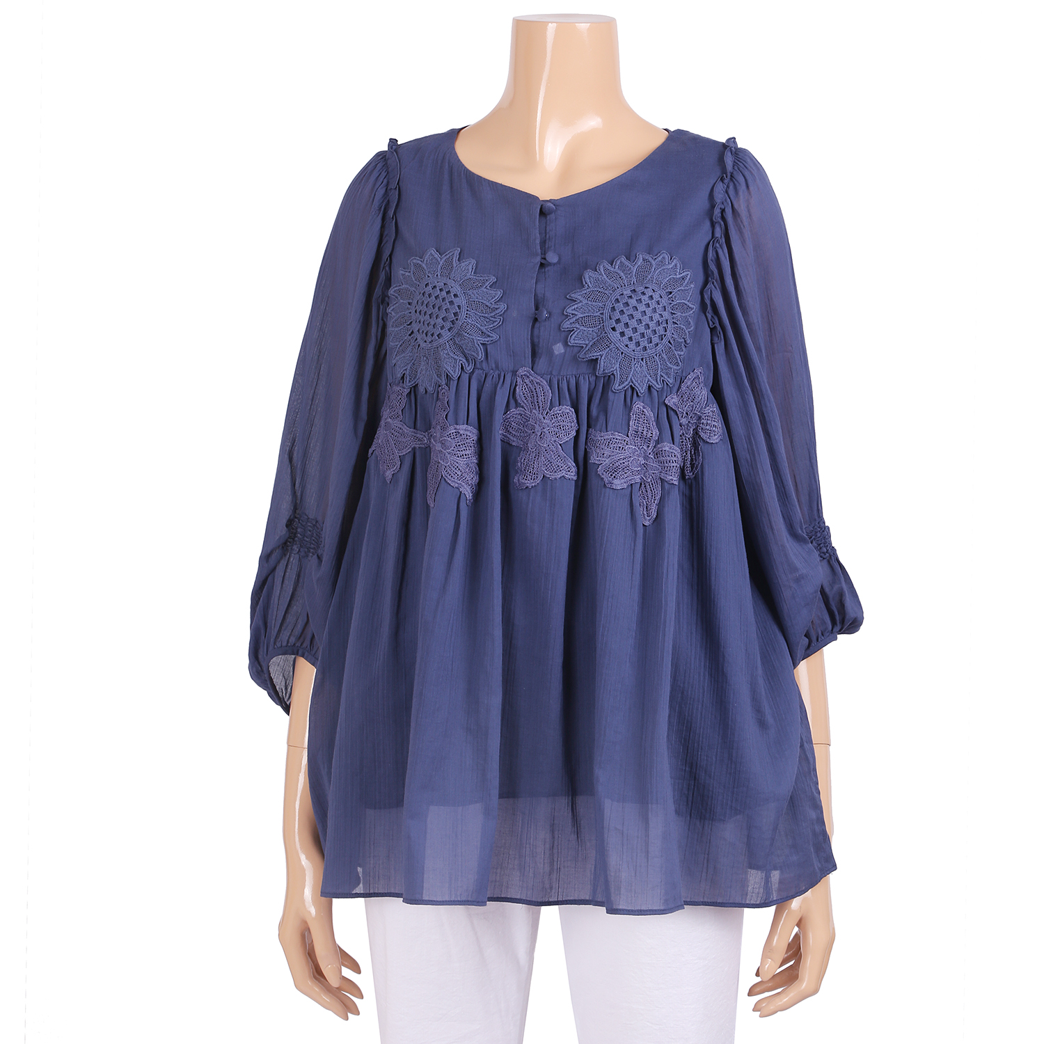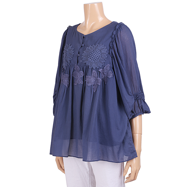 화사한 자수디테일로 고급스러운 포인트가 되어주며 여유있는 핏으로 자연스레 체형까지 커버해주는 스타일