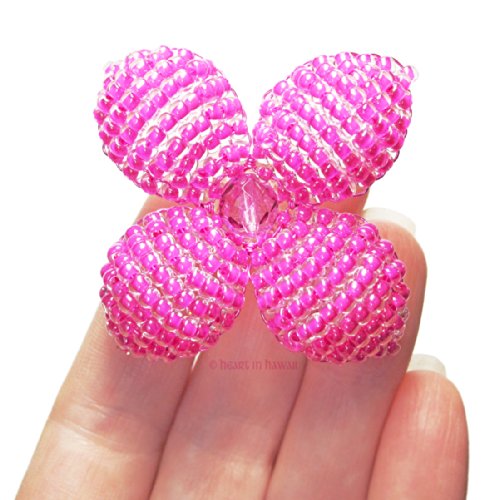 - Title : Makalapua Hawaiian 4 Petaled Beaded Flower Brooch - Pink