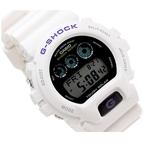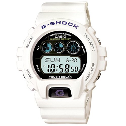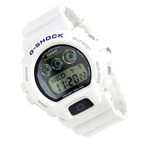 Brand, Seller, or Collection Name:Casio Model number:G-6900A-7DR Part Number:G-6900A-7 Model Year:2011 Item Shape:Round Dial window material type:Mineral Display Type:Digital Case material:White Resin Case diameter:50 millimeters Case Thickness:17 millimeters Band Material:Resin Band width:22 millimeters Band Color:White Dial color:Black LCD Bezel material:Fixed White Calendar:Yes Special features:Black Dial Item weight:15.84 Ounces Movement:Quartz Water resistant depth:200 Meters