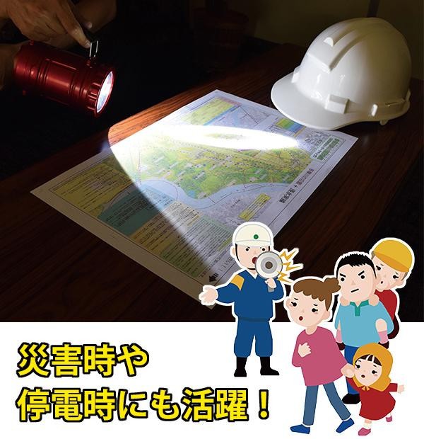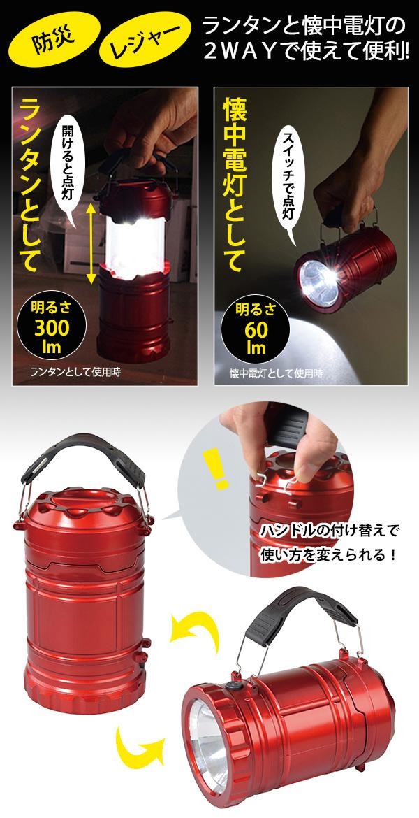 防災やレジャー等に便利なライトです。ハンドルの付け替えで、ランタンにも懐中電灯にもなります。 |