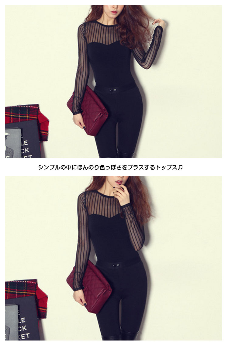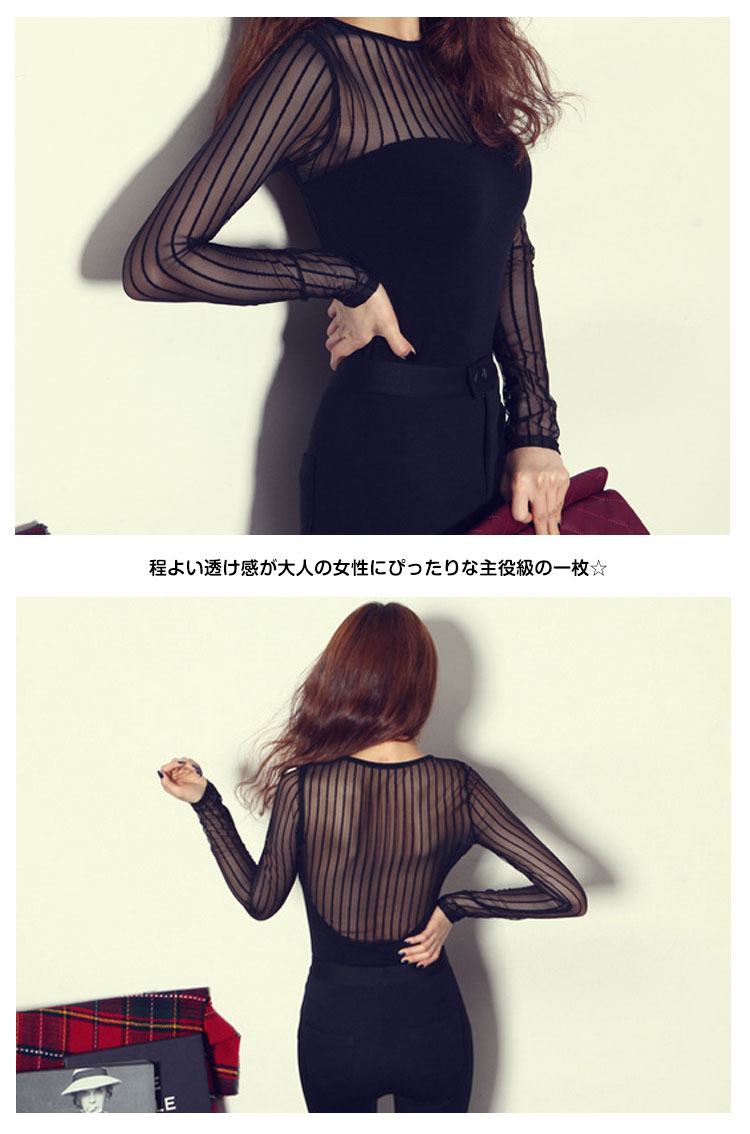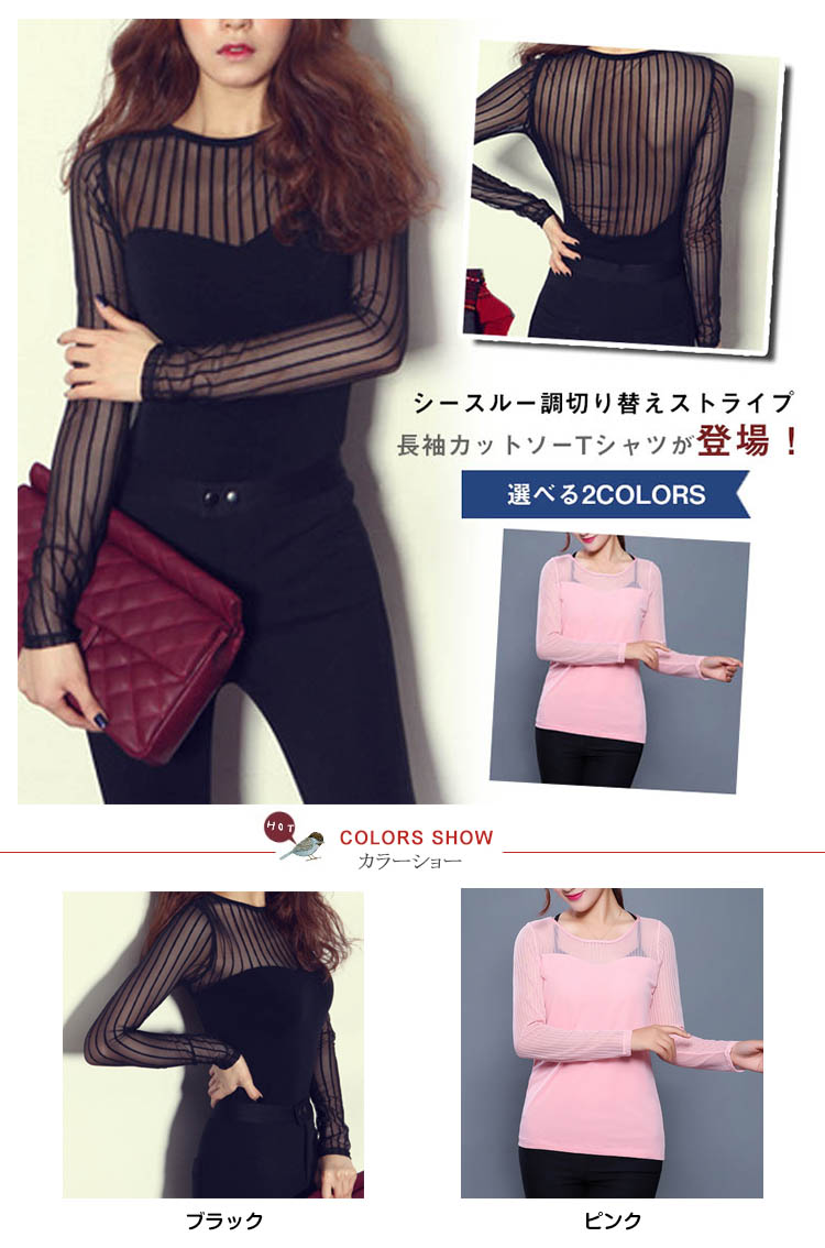| シースルー調切り替えストライプ長袖カットソーTシャツが登場!シンプルの中にほんのり色っぽさをプラスするトップス?程よい透け感が大人の女性にぴったりな主役級の一枚☆シースルー調切り替えデザインが大人レディな雰囲気に使い回しが効く優秀カラーです季節の変わり目から着こなしたいソフトな肌ざわりの生地が魅力の1枚◎ | |