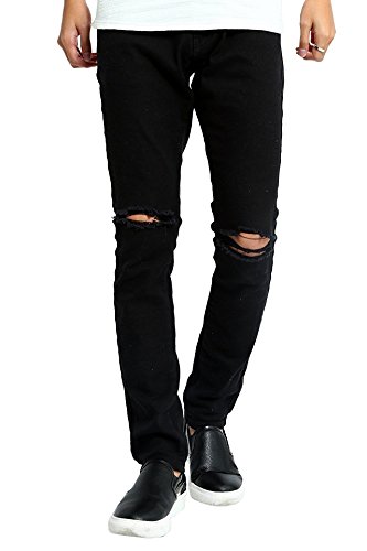 -. Title : (オフクレー)OFFCLAE メンズ ブラック スキニー イージーパンツ ダメージ 加工