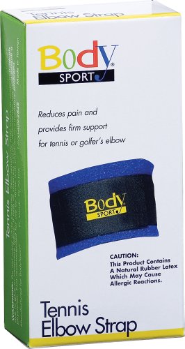 Studio : WBC Group, LLC Publisher : WBC Group, LLC Binding : Sports Product Description Body Sport Tennis Elbow, 3" X 12". Body Sport Tennis Elbow Strap lets you get a firm grip on painful strains due to sports activities or other repetitive arm motions. The adjustable strap applies the right amount of pressure on your forearm muscle group which effectively reduces or eliminates painful strains, like those associated with tennis and golfer's elbow. The plush neoprene construction is of medical-quality use and is used by premier athletes everywhere. After a short period of use, your game, and elbow, should be back to normal. This elbow support system offers technologically advanced compression and support for elbows being used for any activity part of a healthy, active lifestyle. It was engineered to be more breathable and comfortable than other competing products, meaning you can stay active all day long. Easy-sleeve design for effortless application. 0