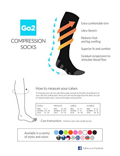 Go2 Compression Socks for Women and Men Athletic Running Socks for Nurses Medical Graduated Nursing Compression Socks for Travel Running Sports Socks