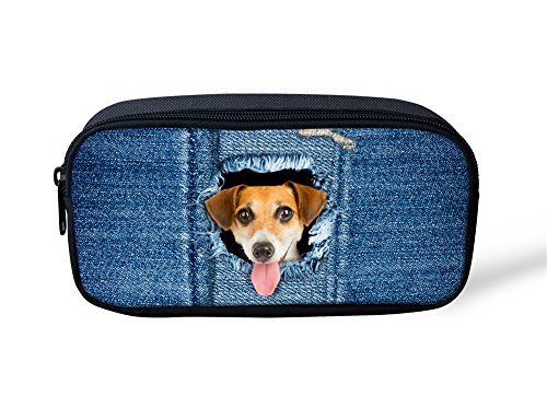 CHAQLIN Lovely Dog Denim Printing School Pencil Pen Bags for Kids
