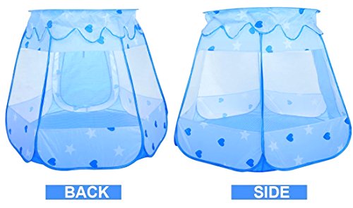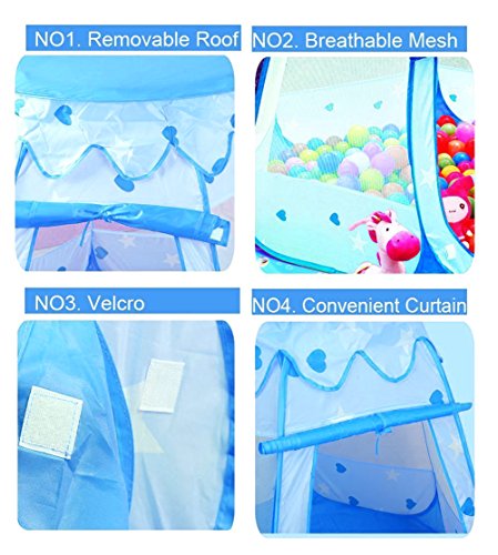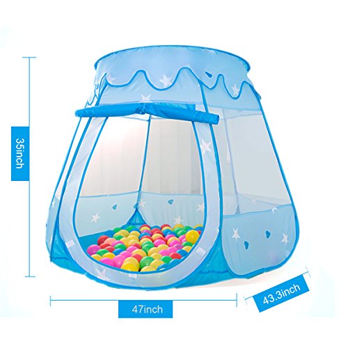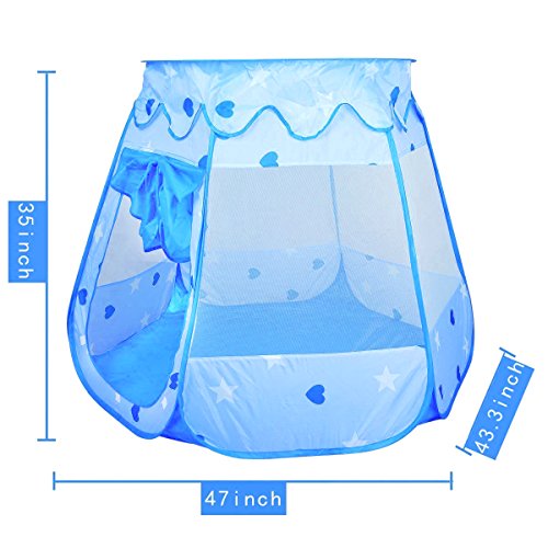 3.Spacious Interior Tent Open Size 47'×43.3'× 35'H, Roomy Enough for Your little Princess to Play inside. The Toy Tent with larger room is ideal for elder children play also, at the same time we offer a great blue prince tent for Boys .