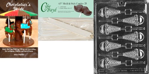 Cybrtrayd 45St25Bk-K008 'Ice Cream Cone Lolly' Kids Chocolate Candy Mold with 25 4.5-Inch Lollipop Sticks and Chocolatier's Guide