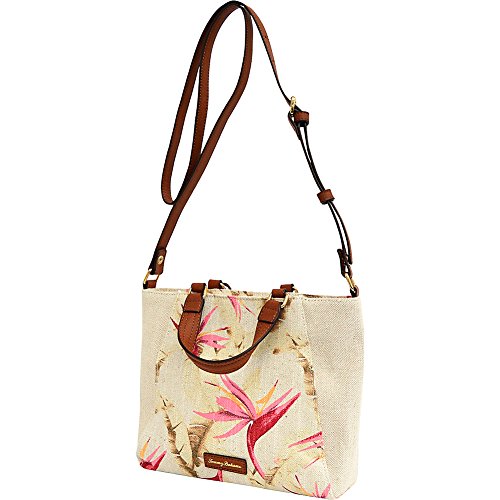 -. Brand : Tommy Bahama -. Department : womens -. Feature : Top zip closure / Double handles with a drop length of 5 inches / Adjustable/detachable shoulder strap with a drop length of 28 inches / 2 interior slip pockets, 1 back zip pocket / Tommy Bahama logo -. Label : Tommy Bahama Handbags -. Manufacturer : Tommy Bahama Handbags -. PackageQuantity : 1 -. ProductGroup : Shoes -. ProductTypeName : HANDBAG -. Publisher : Tommy Bahama Handbags -. Studio : Tommy Bahama Handbags -. Title : Tommy Bahama Handbags Coral Reef Convertible Crossbody