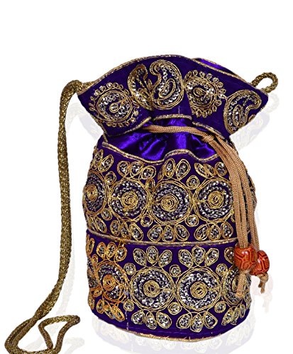 -. Title : Purpledip Traditional Silk Potli bag for Women,Purple (10532)