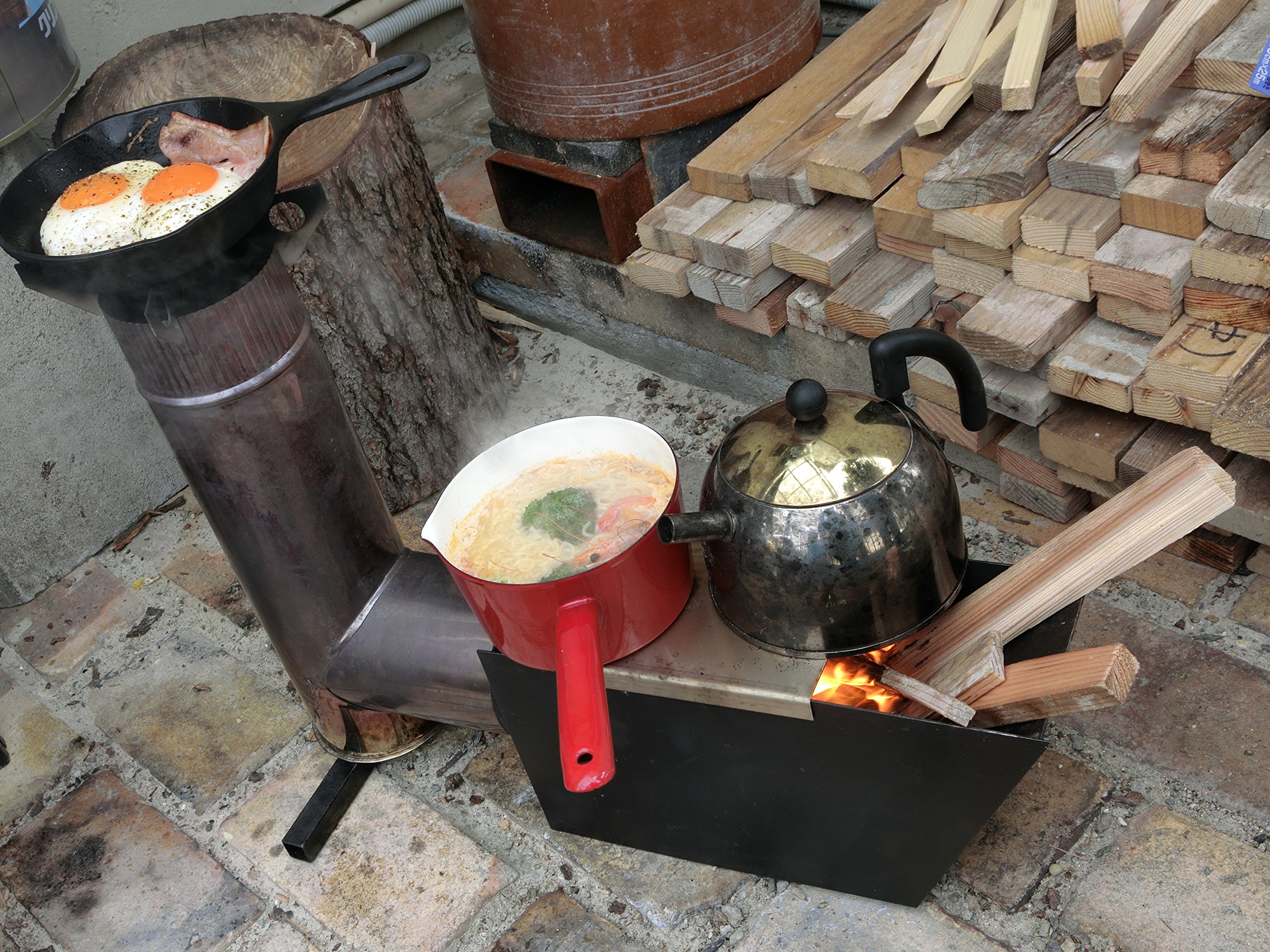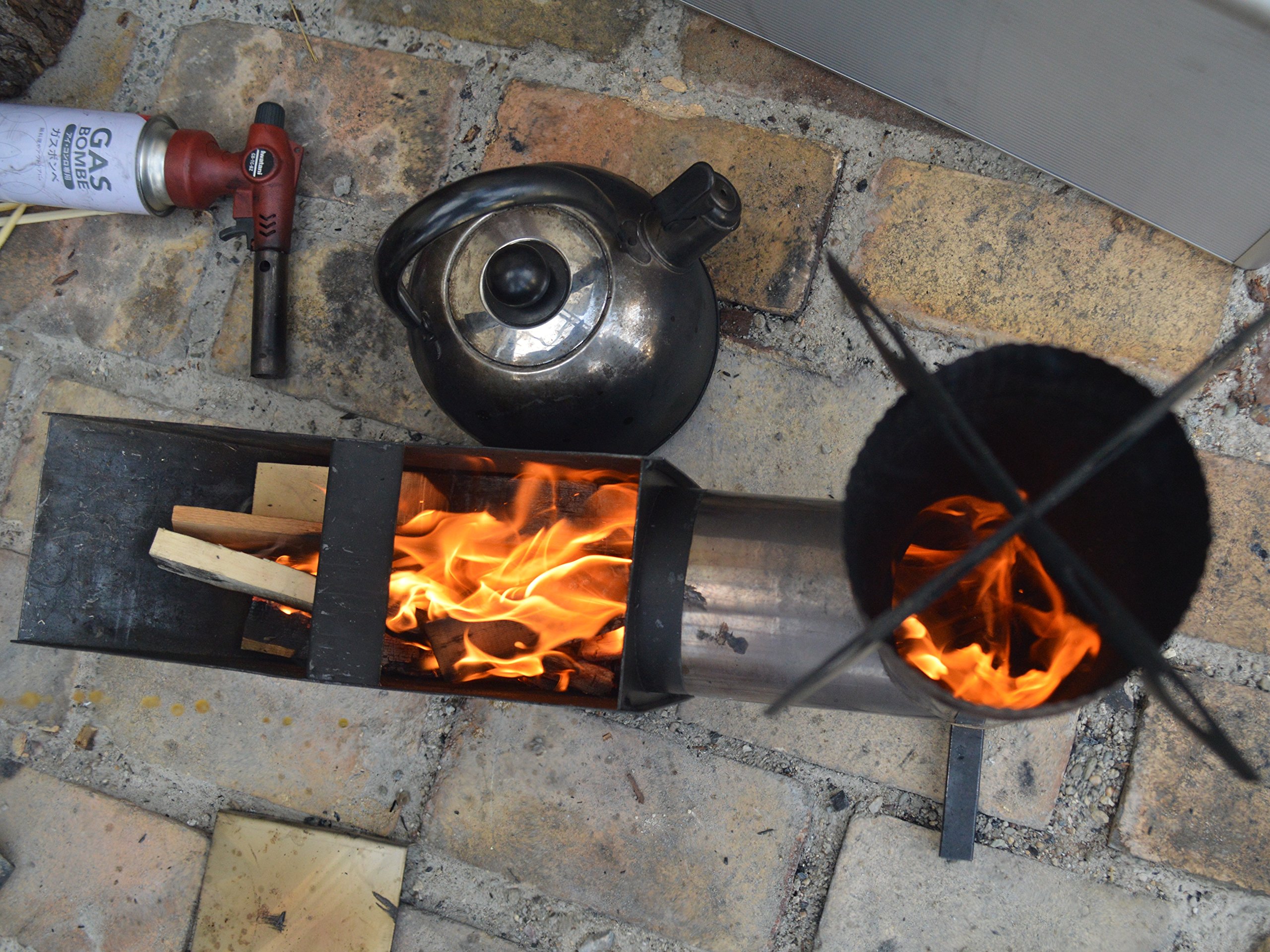 Go-go burns well in a cylindrical body Rocket stove ... spray fire!