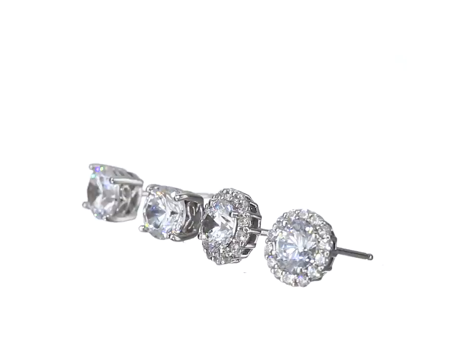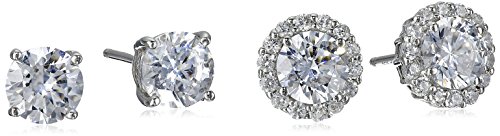 Platinum-Plated Sterling Silver Swarovski Zirconia Round-Cut and Halo Stud Earrings Set