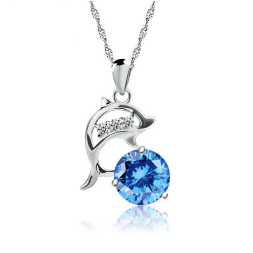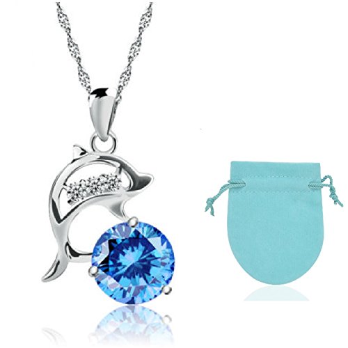 [Scan Tiffany] s? TIFFANY & oC. Featured Product S925 silver dolphin motif CZ Cubic Zirconia Women's Necklace pendant chain jewelry pouch set (blue) [parallel import goods]