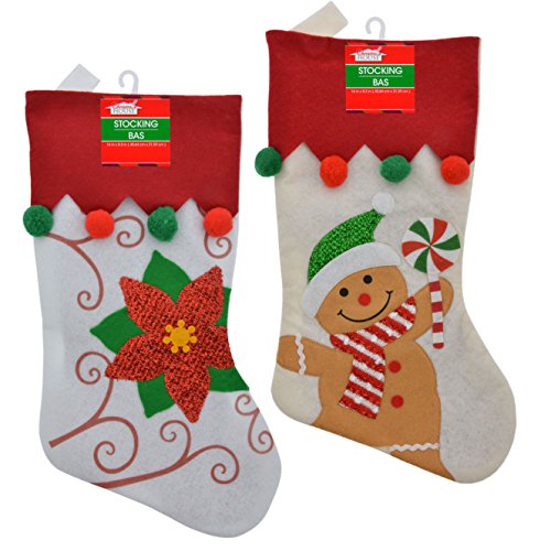 - 18 inch 3D felt stockings with loop for hanging.