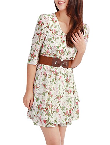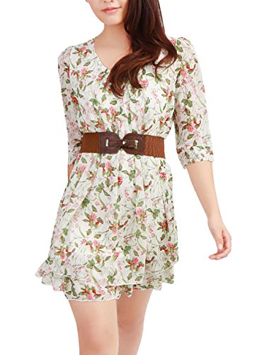 Feature : UXCELL (U excel !) is the sole authorized Seller of Allegra K products / 3/4 Sleeve, Floral Prints, Layered Hem, Lined, Come with a Waist Belt. / 100% Polyester / Model Body Size: Height: Height: 5ft 3inches, Bust: 33inches, Waist: 25 1/4inches, Hip: 35 5/8inches / Model is wearing a X-Small